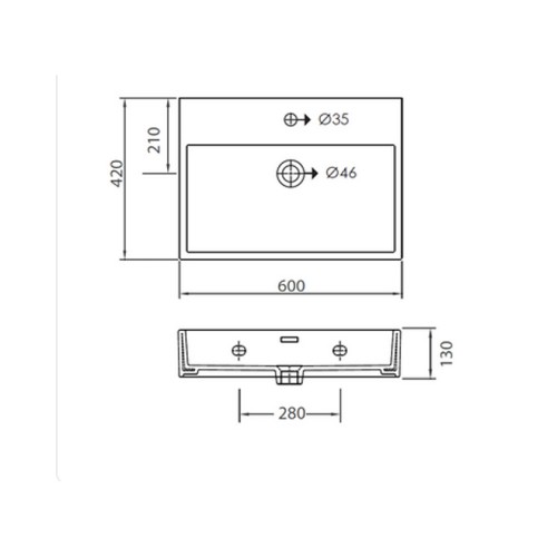 Νιπτήρας πορσελάνης παραλληλόγραμμος Daphne , με λευκή γυαλιστερή επιφάνεια