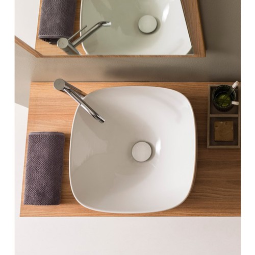 Νιπτήρας επιτραπέζιος από λευκή πορσελάνη με διάσταση 42x42cm.