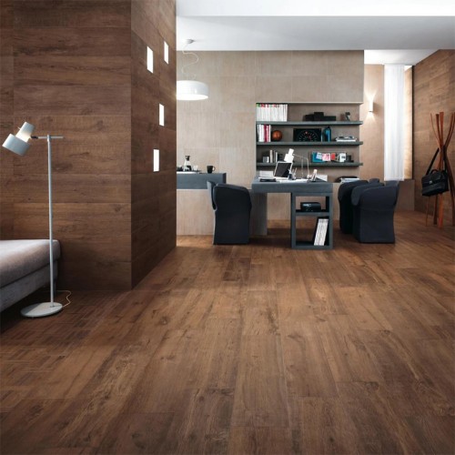 Γρανιτοπλακάκι 15x100 cm, που παραπέμπει σε ξύλο, σε καφέ απόχρωση .